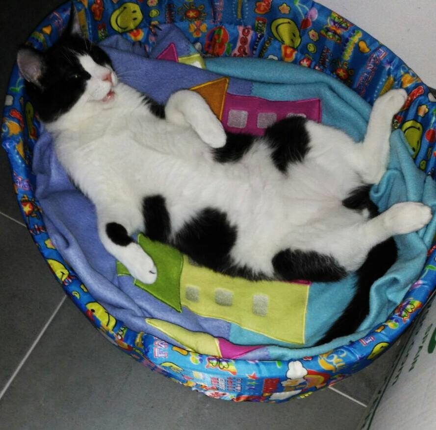 Este bomboncito apareció abandonado en una colonia felina de Valladolid. Una vez más se repite la misma historia “humanos abandonan a su suerte a un pobre felino que no sabe defenderse de los peligros de la calle”… Cristina, al verle durante días escondido entre los matorrales observo que por su carácter o se le buscaba una solución fuera de la calle o sus días estaban contados. Durante unas semanas estuvo en acogida externa de la asociación porque en esos momentos no podíamos asumir casos por falta de casas.