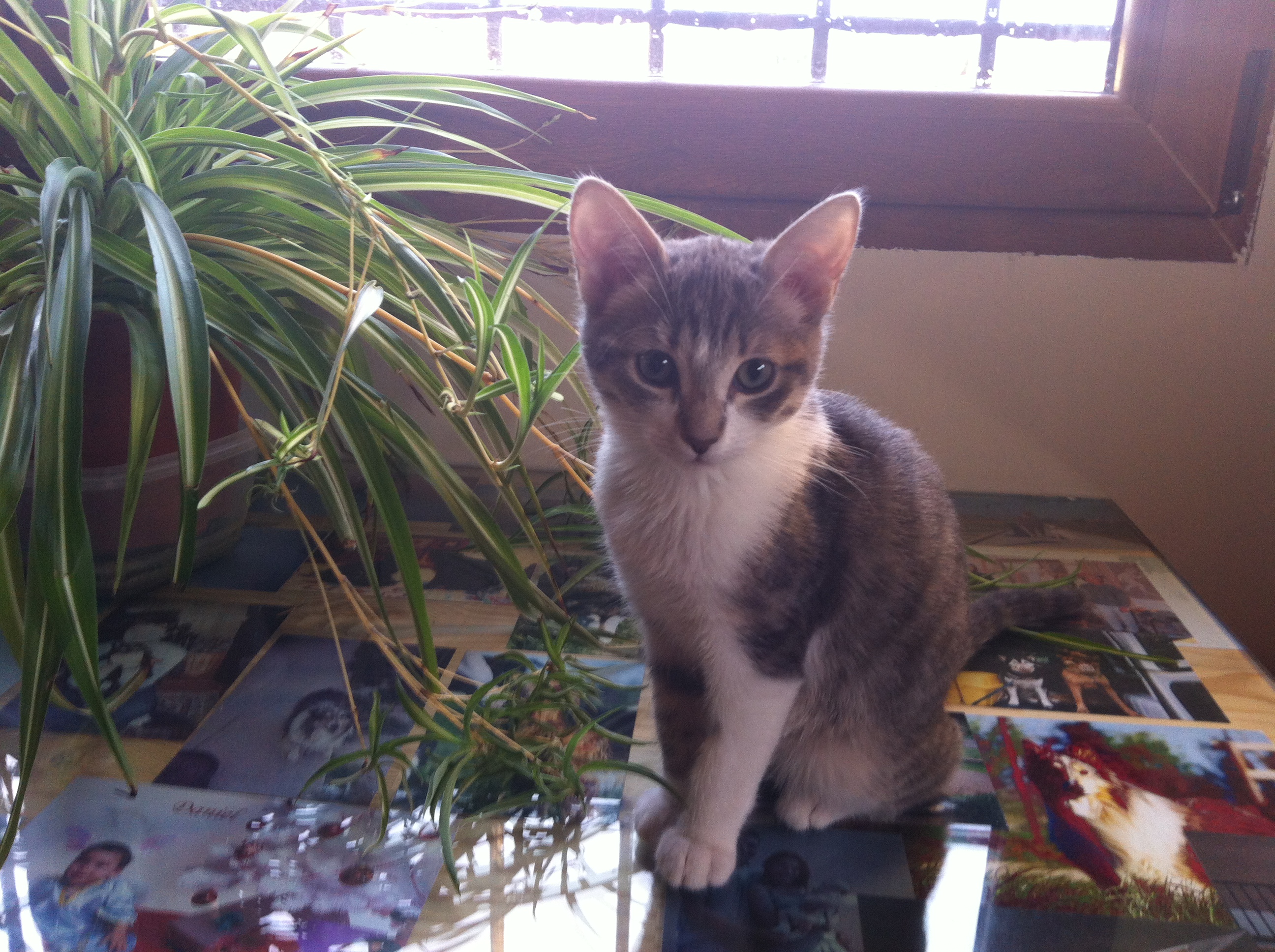 Olivia, preciosa gatita blanca y gris tabby, muy cariñosa y dulce.